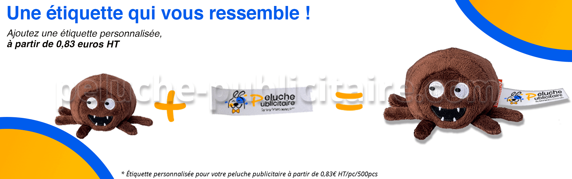 Avec Peluche-Publicitaire.com, choisissez la peluche personnalisée parmi des centaines de modèles et personnalisez la avec votre texte et logos. Le marquage peluche peut se faire en sérigraphie, en broderie, en impression directement sur une étiquette, un accessoire ou bien la peluche.